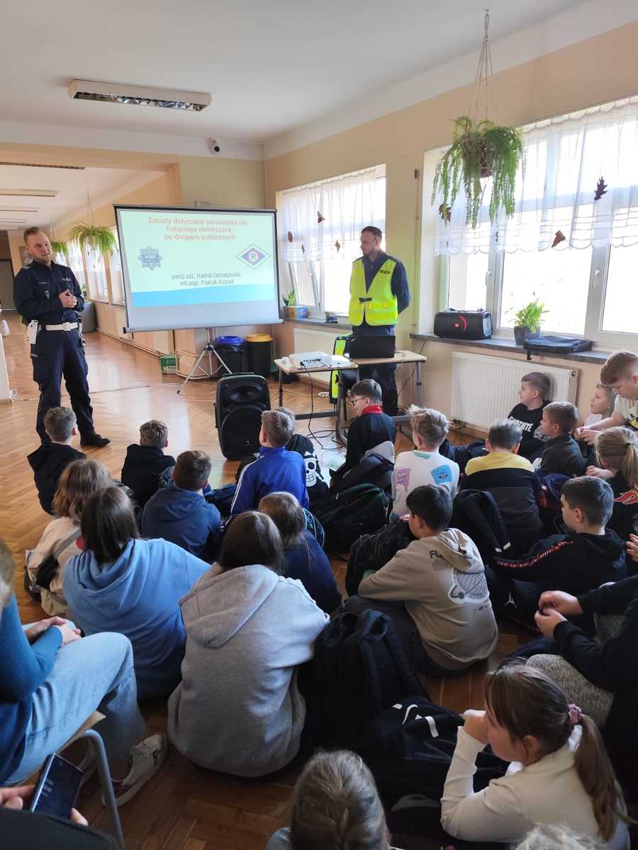 W ciągu całego roku szkolnego dzielnicowi z Komendy Powiatowej Policji w Gorlicach i jednostek podległych wraz z policjantami ruchu drogowego i przewodnikiem psa służbowego uczestniczą kilkanaście razy w ciągu miesiąca w spotkaniach z dziećmi i młodzieżą we wszystkich przedszkolach i szkołach na terenie całego powiatu gorlickiego. W ostatnich tygodniach takie spotkania odbyły się między innymi w szkole Podstawowej w Binarowej i Stróżówce, Ośrodku Szkolno-Wychowawczym w Kobylance, oraz przedszkolu w Moszczenicy. Policjanci podczas takich spotkań uczą, jak prawidłowo poruszać się po drodze, jak bezpiecznie spędzać wolny czas, co należy zrobić w sytuacji jakiegoś wypadku czy niebezpiecznego zdarzenia. Dzielnicowi w trakcie prelekcji i rozmów z najmłodszymi przekazują im także informacje na temat numerów alarmowych oraz konieczności korzystania z elementów odblaskowych w trakcie poruszania się drogą po zmroku. Funkcjonariusze rozmawiają również z dziećmi o zasadach korzystania z hulajnóg elektrycznych. W trakcie tych spotkań nie może również zabraknąć możliwości obejrzenia wyposażenia policjanta do służby, przymierzenia kamizelki odblaskowej lub czapki policyjnej, i zobaczenia od środka policyjnego radiowozu. Jest także okazja do porozmawiania z przewodnikiem psa służbowego, który wyjaśnia jak wygląda jego praca razem z czworonożnym partnerem. Dzieci na koniec takich spotkań otrzymują także do funkcjonariuszy odblaski.